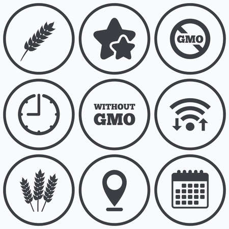 時計 Wifi 星のアイコン 自然の新鮮なバイオ食品のアイコン グルテン無料の農業標識記号です カレンダーの記号です のイラスト素材 ベクタ Image